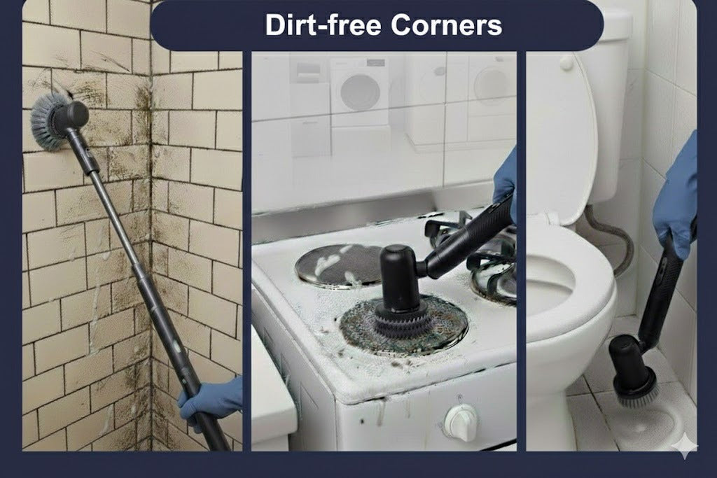 Clean areas that are normally difficult to reach, such as behind toilets, sinks, appliances, and in ceiling corners. The flexible brush heads and adjustable handle bend and extend to tackle these spots easily, giving you a more thorough clean without stretching or straining.
