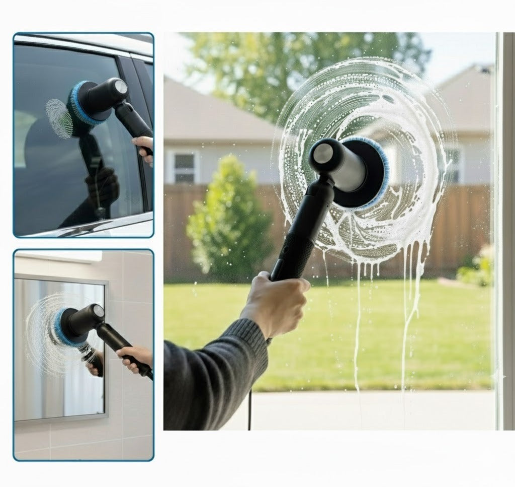 Use the scrubber to clean mirrors, windows, and glass surfaces both indoors and outdoors. It removes smudges, fingerprints, watermarks, and dust for streak-free clarity. The soft brushes ensure safe cleaning, leaving surfaces sparkling without scratches or damage.