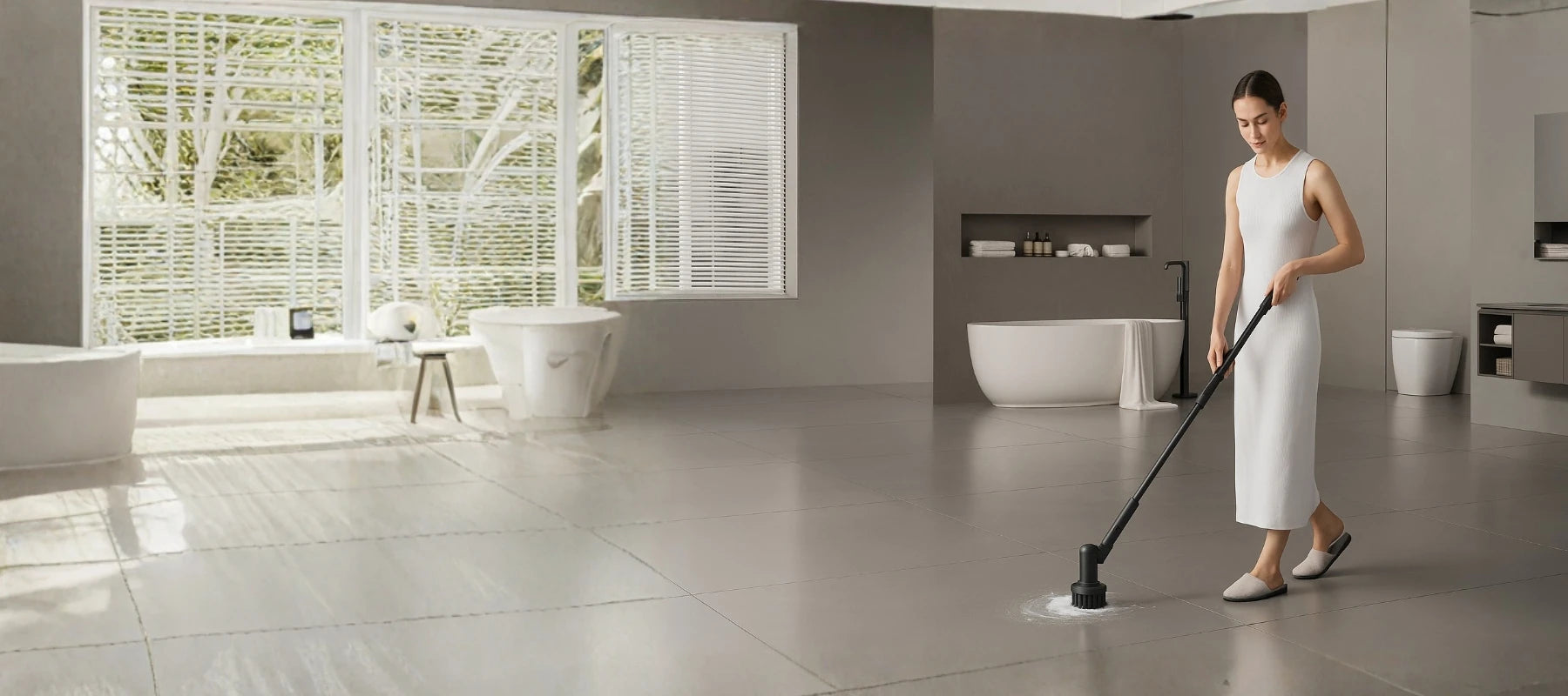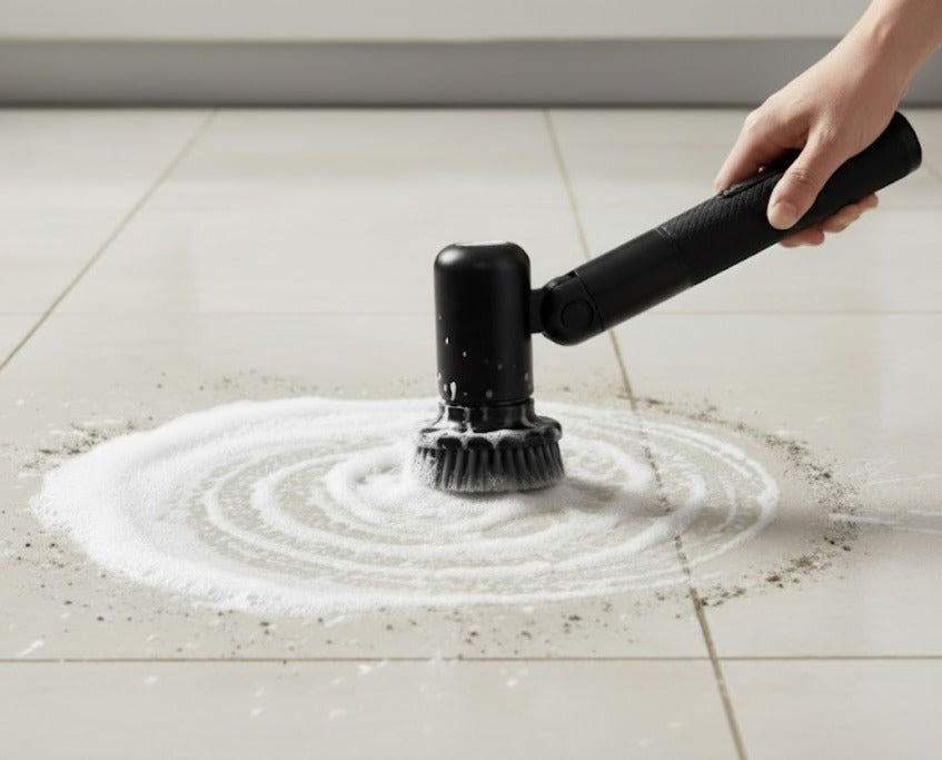 Scrub tile, vinyl, or linoleum floors effortlessly. The large flat brush covers wide areas, while smaller brushes reach grout lines and corners. Even under cabinets and behind appliances, your floors look freshly cleaned without bending, kneeling, or struggling with manual mops and brushes.